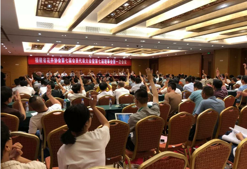 2018年7月26日下午,福建省花卉協(xié)會(huì)第七屆會(huì)員代表大會(huì)暨第七屆理事會(huì)第一次會(huì)議在福建會(huì)堂五樓會(huì)議廳召開(kāi),來(lái)自全省的200多位會(huì)員代表參加換屆大會(huì)。