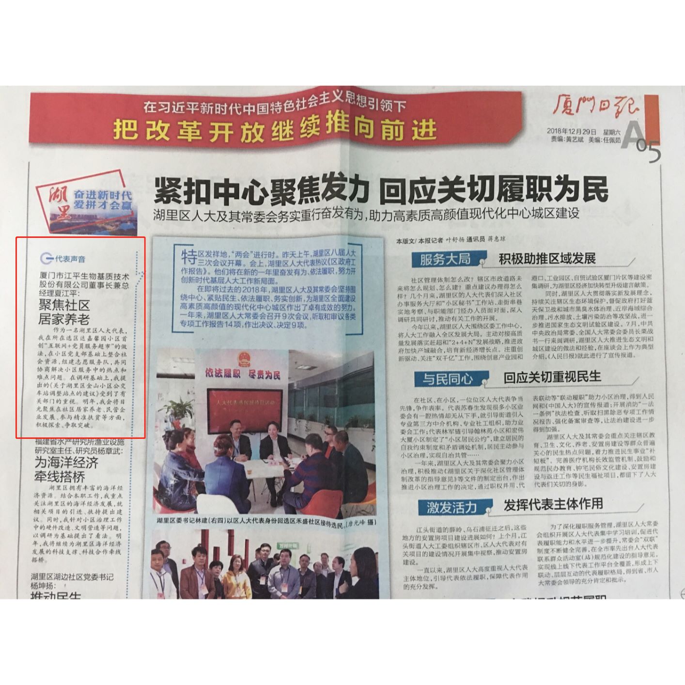 “為人民發(fā)聲”,夏江平女士是這樣說的,更是這樣做的。作為一名人大代表,夏江平女士時刻不忘融入群眾,為老百姓發(fā)聲。代表期間,夏江平女士在認(rèn)真調(diào)研的基礎(chǔ)上,分別提出了《關(guān)于湖里區(qū)金山小區(qū)公交車站調(diào)整站點的建議》、《關(guān)于拓展我區(qū)居家養(yǎng)老服務(wù)方式的建議案》、《關(guān)于扶持我區(qū)中小企業(yè)的建議》、《關(guān)于鼓勵和組織區(qū)內(nèi)民營企業(yè)參與對口扶貧工程的建議案》四份議案。其中《關(guān)于湖里區(qū)金山小區(qū)公交車站調(diào)整站點的建議》議案由于反映的問題都實事求是、客觀存在,提出的建議也較為可行,政府相關(guān)部門非常重視并均予采納?!稄B門日報》上專門為此做了報道。