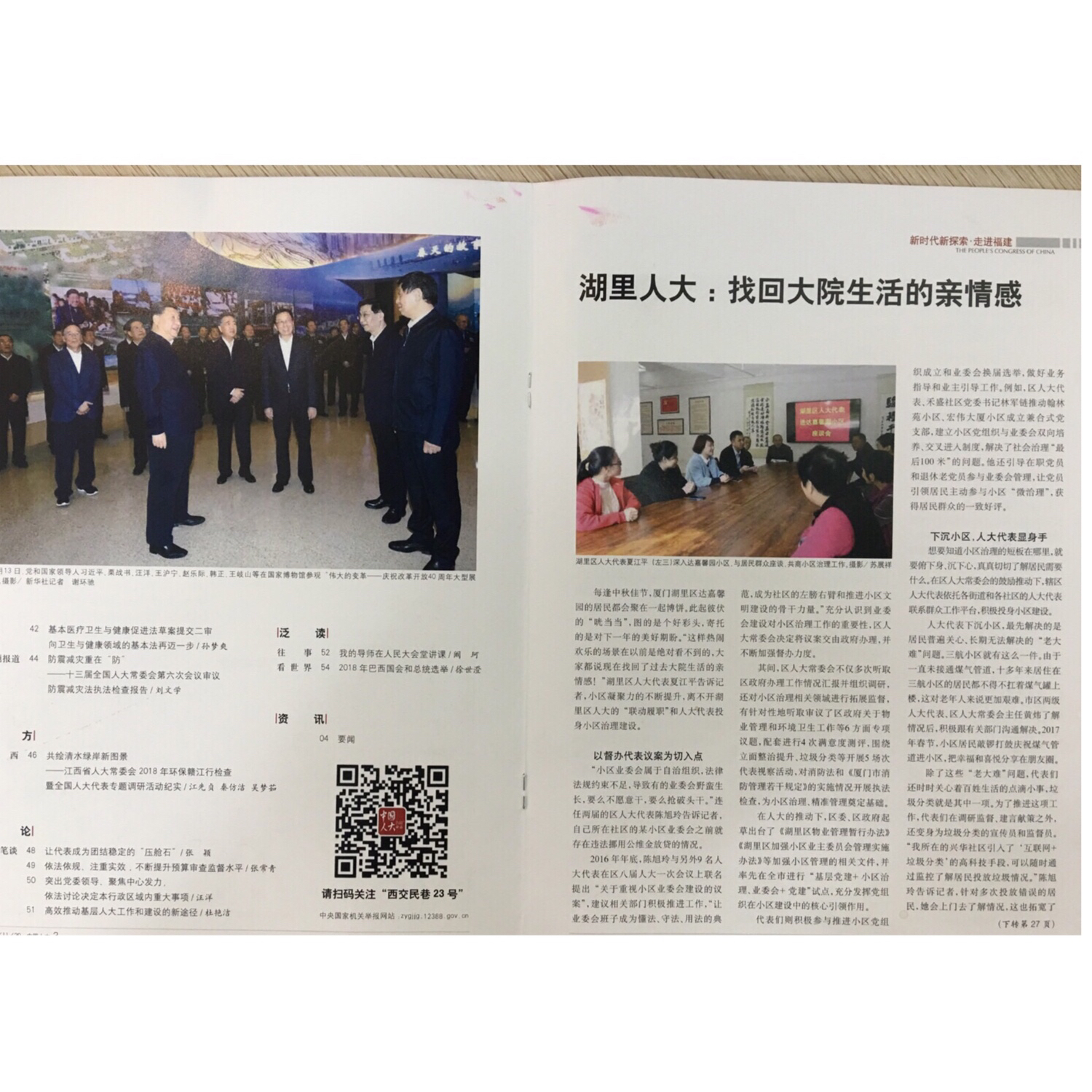 夏江平女士所選的湖里區(qū)---達(dá)嘉馨園小區(qū),原先是一個環(huán)境不好的小區(qū),小區(qū)居民多年來一直反應(yīng)強烈,要求改善。于是,夏江平女士在了解到居民有這個訴求之后,深入到居民中間共商小區(qū)治理。如今,小區(qū)煥然一新,成為遠(yuǎn)近聞名的和美小區(qū)。人大代表為人民辦實事,此實例被《中國人大》當(dāng)作典型范例并刊登報道。