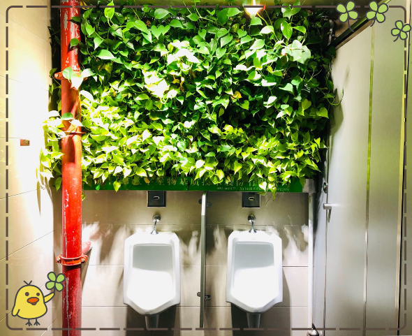 因此,江平生物不僅讓江平人能感受到室內(nèi)的綠意,也讓江平生物的“鄰居們”——樓宇內(nèi)其他企業(yè)和員工,同樣的感受到江平生物的這份心意。江平生物默默的為樓宇的男洗手間免費的添增了立體綠化墻,不僅美化了公共環(huán)境,也增加了員工如廁的舒適度。