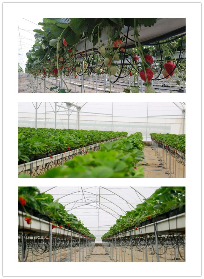 2、無(wú)土栽培:智能溫室、水肥一體化技術(shù),草莓產(chǎn)量高、質(zhì)量好;