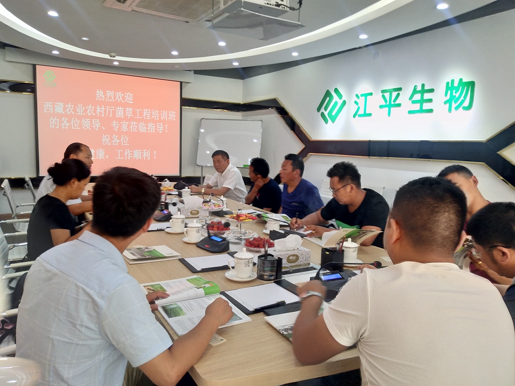 2019年6月28日下午,西藏自治區(qū)菌草工程技術(shù)培訓(xùn)班一行蒞臨我司,就西藏地區(qū)菌草種植經(jīng)驗(yàn)進(jìn)行交流。此次培訓(xùn)班是由菌草綜合開發(fā)利用技術(shù)國(guó)家地方聯(lián)合工程研究中心與西藏自治區(qū)農(nóng)業(yè)農(nóng)村廳共同舉辦,培訓(xùn)班成員包括自治區(qū)農(nóng)牧科學(xué)院、畜牧總站、林芝、米林縣、扎囊縣等科研院所和地縣農(nóng)業(yè)農(nóng)村業(yè)務(wù)管理部門,公司種植技術(shù)部副總經(jīng)理韓翰松也參加了此次培訓(xùn)。