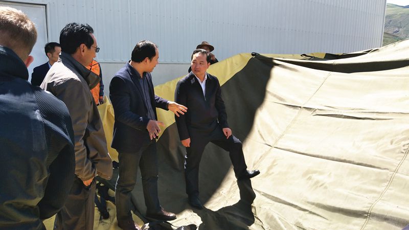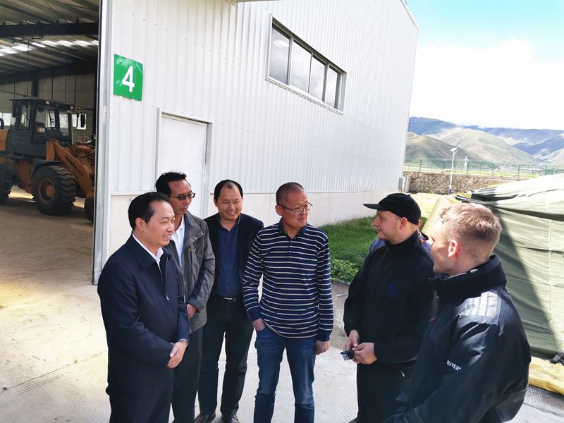 調(diào)研現(xiàn)場(chǎng)正逢兩位外國工程師在基質(zhì)廠安裝UTV膜,吳巨培一行與兩位專家親切交流,感謝他們不遠(yuǎn)千里而來對(duì)援藏工作的支持。