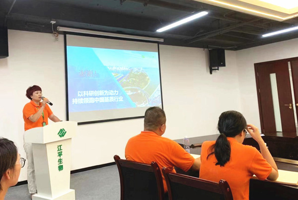 首先由吳總和鐘總上臺(tái)分別介紹了公司近期幾個(gè)項(xiàng)目的建設(shè)情況,接著由方總跟大家再次分享了公司的企業(yè)文化并介紹公司未來的發(fā)展戰(zhàn)略,包括科研研發(fā)方向、發(fā)展規(guī)劃,管理與激勵(lì)三個(gè)方面,他特別指出:2019年是我們的轉(zhuǎn)折之年,江平生物的目標(biāo)是以科研創(chuàng)新為動(dòng)力持續(xù)領(lǐng)跑中國基質(zhì)行業(yè)。最后由夏總上臺(tái)致辭,夏總回顧了公司成立16年來的發(fā)展歷史,感慨公司創(chuàng)業(yè)過程的艱辛,感謝老員工們兢兢業(yè)業(yè)陪伴公司一路發(fā)展壯大起來;她表示對(duì)公司美好未來充滿信心,并期待各位同事在新的環(huán)境下能砥礪奮進(jìn),爭(zhēng)創(chuàng)輝煌。