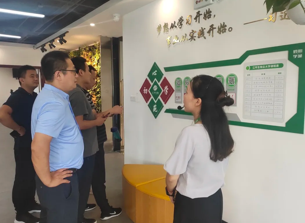 盧副部長一行十分認可我司在土壤改良及生態(tài)修復上取得的成效,并對我司的黨建工作給予了肯定,特別是對黨徽墻、初心學苑、黨建室給予了高度贊揚:不僅創(chuàng)意十足,而且融入了江平生物自身的特色,具有很好的借鑒意義。
