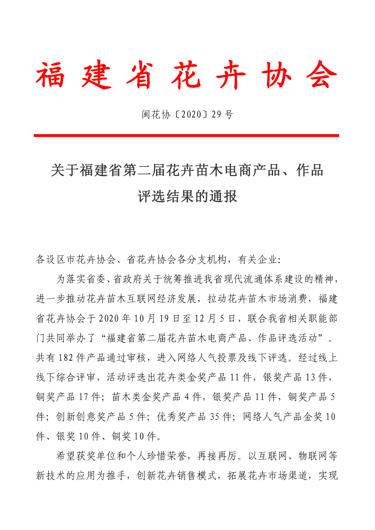 為落實省委、省政府關(guān)于統(tǒng)籌推進(jìn)福建省現(xiàn)代流通休系建設(shè)的精神,進(jìn)一步推動花卉苗木互聯(lián)網(wǎng)經(jīng)濟發(fā)展,拉動花卉苗木市場消費,福建省花卉協(xié)會于2020年10月19日至12月5日,聯(lián)合福建省相關(guān)職能部門共同舉辦了“福建省第二屆花卉苗木電商產(chǎn)品、作品評選活動”。