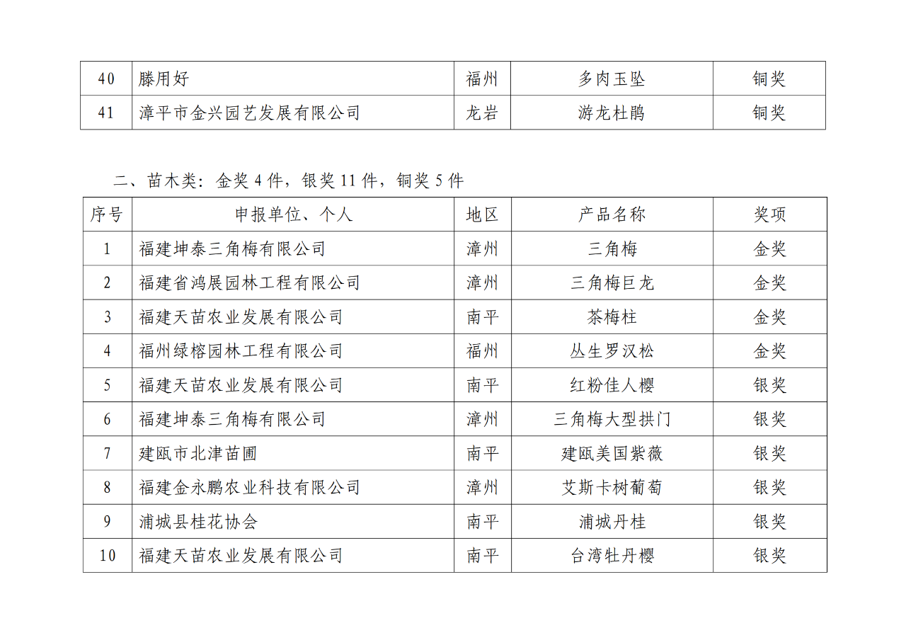 經(jīng)過線上線下綜合評審,活動評選出花卉類金獎產(chǎn)品 11 件,銀獎產(chǎn)品 13 件,銅獎產(chǎn)品 17 件;苗木類金獎產(chǎn)品 4 件,銀獎產(chǎn)品 11 件,銅獎產(chǎn)品 5件;創(chuàng)新創(chuàng)意獎產(chǎn)品 5 件;優(yōu)秀獎產(chǎn)品 35 件;網(wǎng)絡(luò)人氣產(chǎn)品金獎 10件、銀獎 10 件、銅獎 10 件。