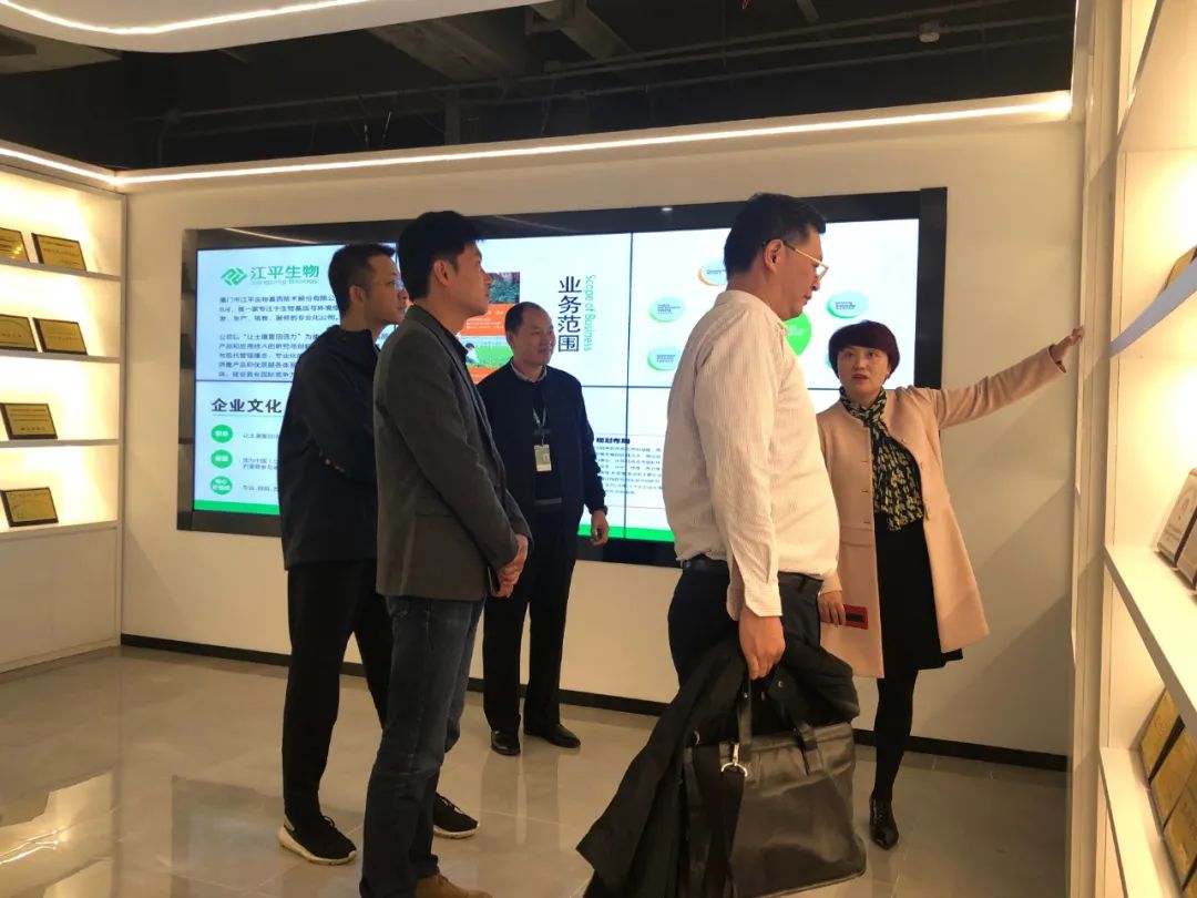 在夏總、吳總的帶領(lǐng)下,李銘處長一行人先后參觀公司展廳、了解公司生物基質(zhì)系列產(chǎn)品,并通過江平生物科研創(chuàng)新歷程對我司有了更進(jìn)一步的了解。