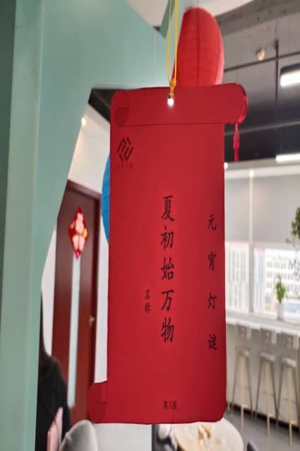 今天的休息區(qū)充滿歡聲笑語,熱鬧非凡。燈籠+燈謎絕對是元宵節(jié)的氣氛組了,猜謎的歡笑聲、討論聲時不時傳入耳中,大家穿梭在燈謎區(qū)與禮品區(qū),節(jié)日氛圍濃。