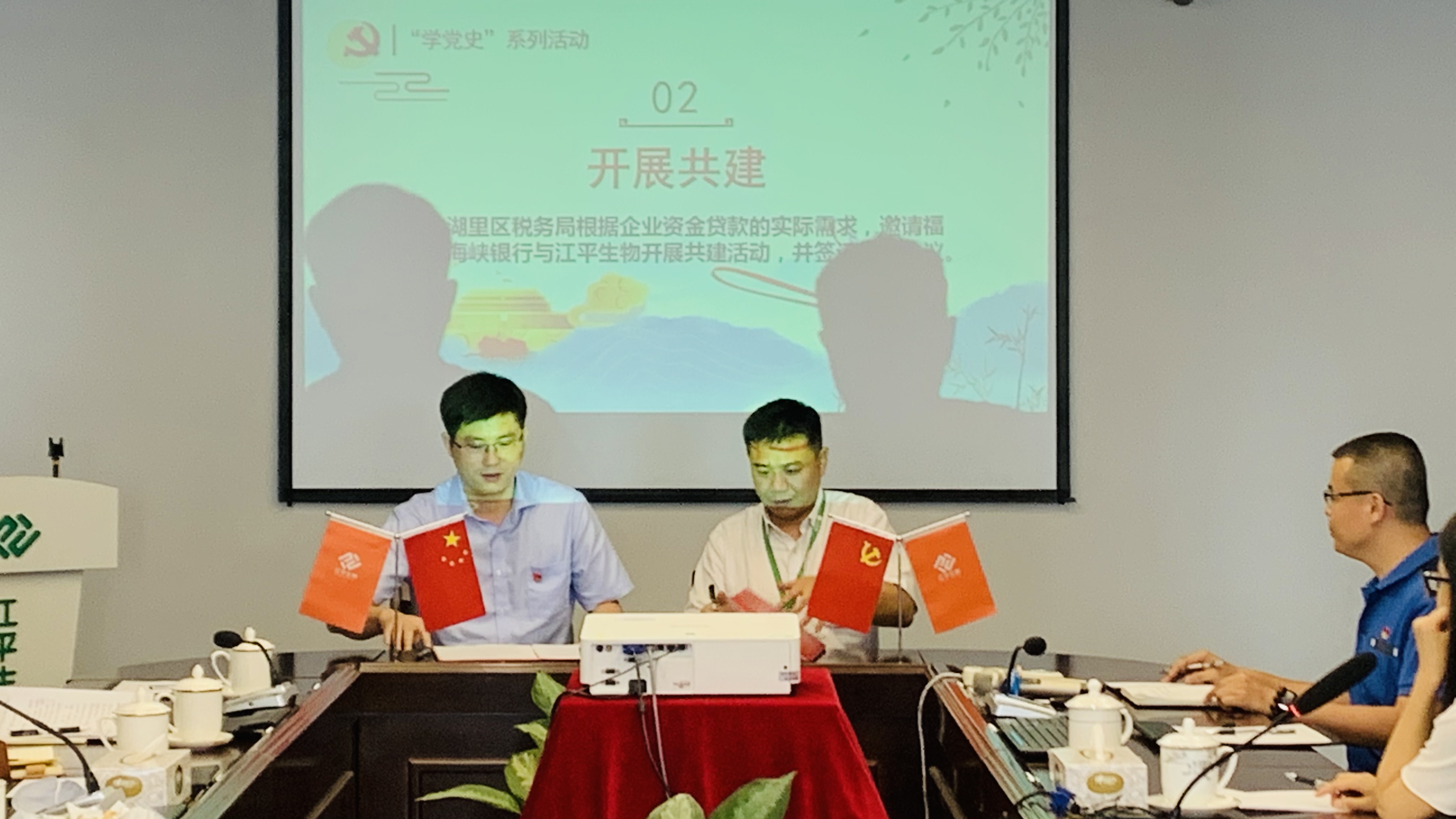 5月28日下午,江平生物聯(lián)合湖里區(qū)稅務局、福建海峽銀行廈門分行舉辦了一場以組織參觀、開展共建、宣傳政策、答疑解惑為主要活動形式的“學黨史系列活動之黨建益企聯(lián)合行動”,尋求共同學習、共辦實事、共同發(fā)展。