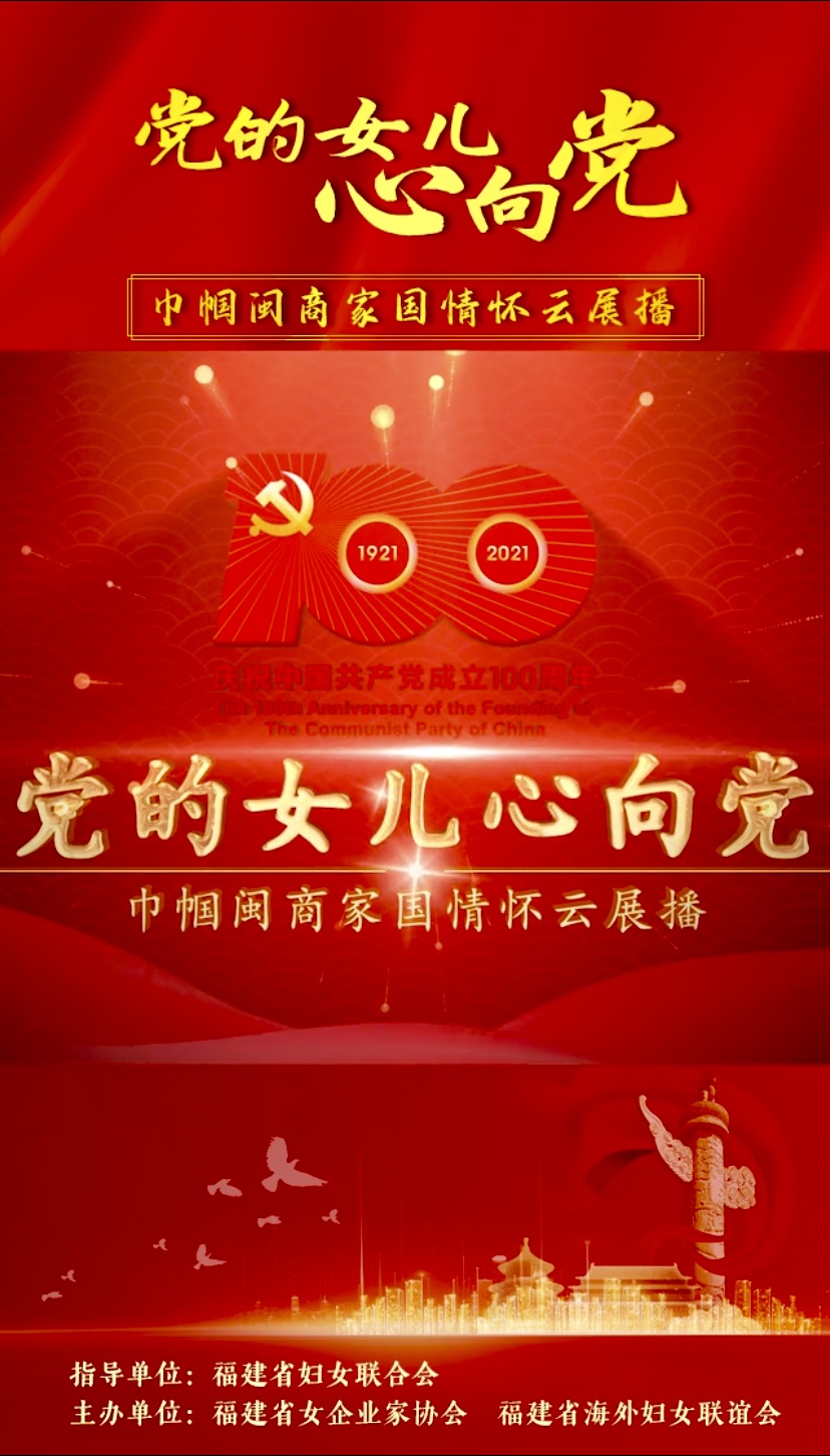 近日,由福建省婦女聯(lián)合會(huì)指導(dǎo),福建省女企業(yè)家協(xié)會(huì)、福建省海外婦女聯(lián)誼會(huì)共同主辦的“黨的女兒心向黨——巾幗閩商家國(guó)情懷云展播”活動(dòng)正火熱開展,巾幗閩商線上發(fā)聲,獻(xiàn)禮建黨百年。讓我們一起來聽聽“黨的女兒”夏江平的心聲吧~