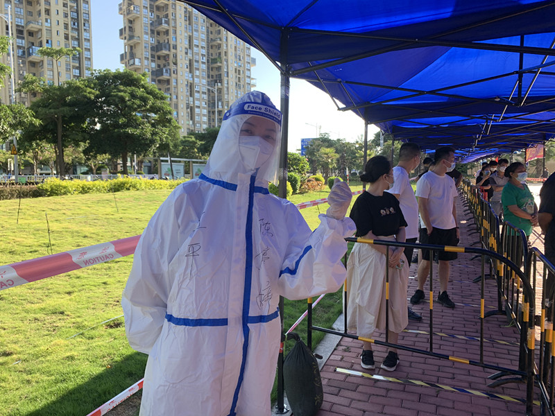 她是白小群,江平生物黨員,近12個小時的咬牙堅持,她說:“防護服下是全身濕透的我,居民面前是耐心指導的我,疫情面前是勇敢抗疫的我,與你同在,廈門加油!”