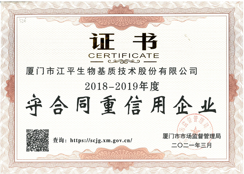 ?2018-2019年度守合同重信用企業(yè)(廈門市市場監(jiān)督管理局)