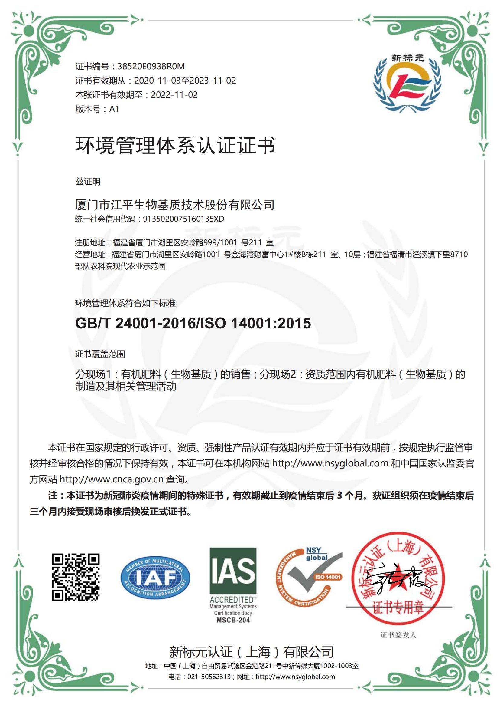 ?通過ISO 14001環(huán)境管理體系、ISO 9001質(zhì)量管理體系、ISO 45001職業(yè)健康安全管理體系認(rèn)證。