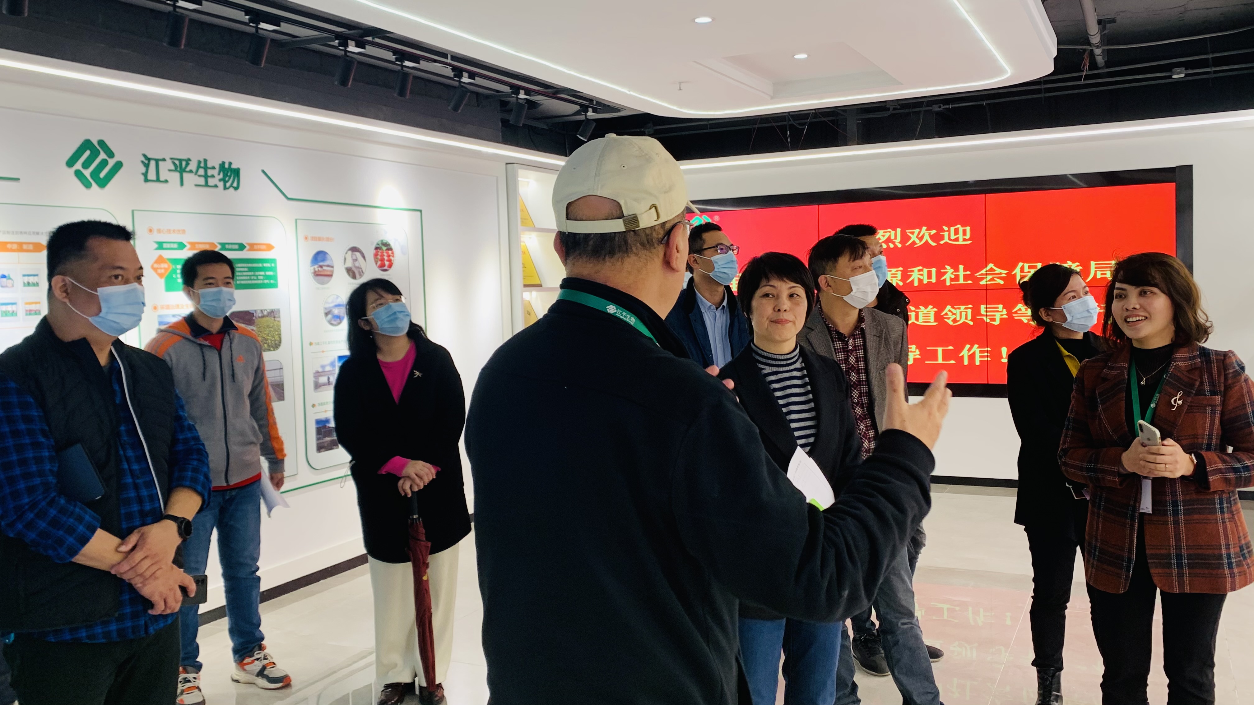 一行參觀江平生物展廳,了解企業(yè)基本情況