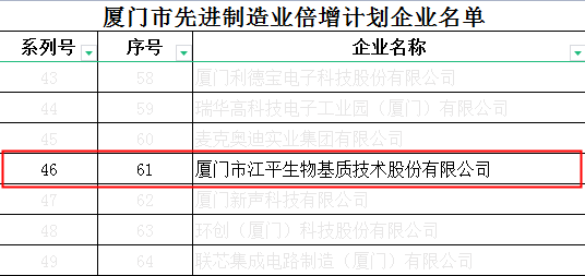 近日,根據(jù)《廈門市人民政府關(guān)于印發(fā)先進(jìn)制造業(yè)倍增計(jì)劃實(shí)施方案(2022-2026年)的通知》(廈府規(guī)〔2022〕3號(hào)),經(jīng)市政府專題會(huì)研究,廈門市工業(yè)和信息化局公示確定廈門市先進(jìn)制造業(yè)倍增計(jì)劃企業(yè)名單(第一批),江平生物榜上有名!