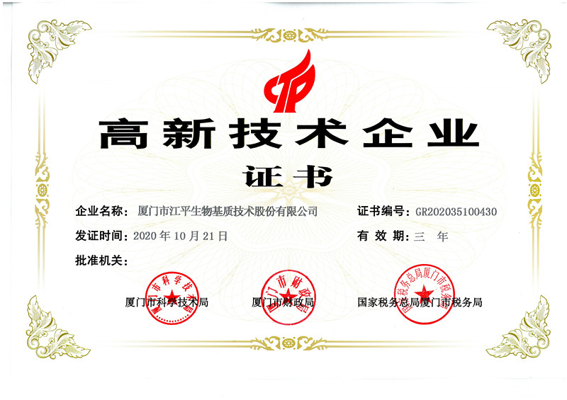 江平生物目前已獲得國家高新技術企業(yè)、工信部專精特新“小巨人”企業(yè)、福建省科技小巨人領軍企業(yè)、福建省林業(yè)產(chǎn)業(yè)化龍頭企業(yè)、農(nóng)業(yè)產(chǎn)業(yè)化重點龍頭企業(yè)、福建省知識產(chǎn)權優(yōu)勢企業(yè)、福建省及廈門市重點上市后備企業(yè)、福建省及廈門市專精特新中小企業(yè)、廈門市“三高企業(yè)”、廈門市龍頭骨干民營企業(yè)、廈門市創(chuàng)新型企業(yè)等榮譽。