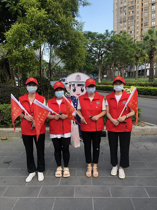 圖為張玉(右一)、鄭慧娟(左一)積極投身文明交通督導(dǎo)志愿行動