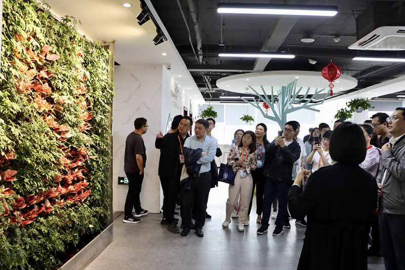 觀摩團一行首先參觀了企業(yè)展廳、植物墻、初心里程碑、辦公區(qū)、實驗室,熟悉了解公司的初心歷程、亮點特色以及實踐成效,并通過研發(fā)墻、院士墻,了解我司在研發(fā)創(chuàng)新過程中與院士專家團隊的深度合作、科研成果。