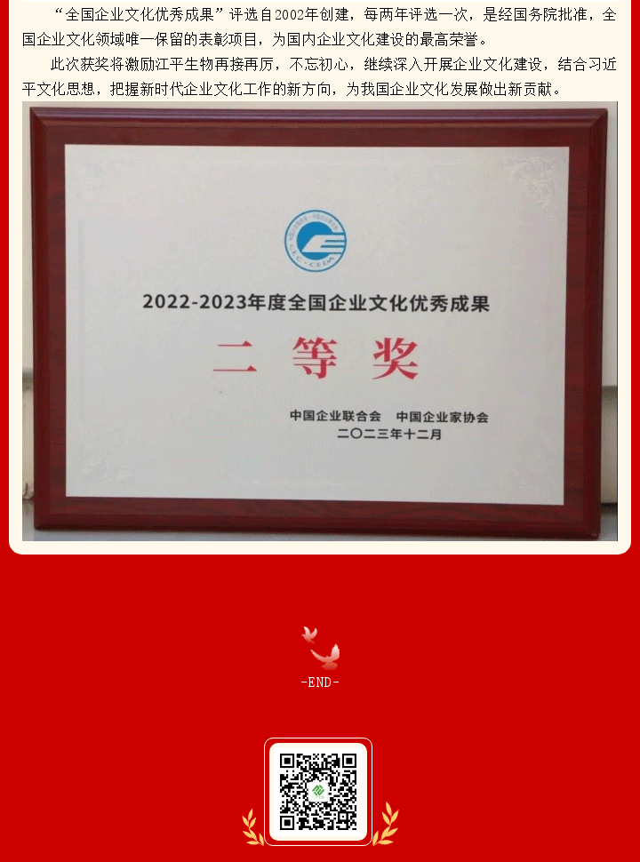 喜訊|江平生物榮獲“2022-2023年度全國企業(yè)文化優(yōu)秀成果二等獎