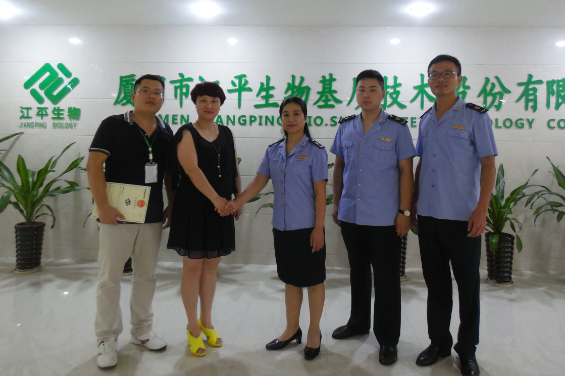 日前,湖里區(qū)市場監(jiān)督管理局胡朝陽主任一行蒞臨我司交流指導(dǎo),我司總經(jīng)理夏江平女士與行政部唐經(jīng)理予以接待。