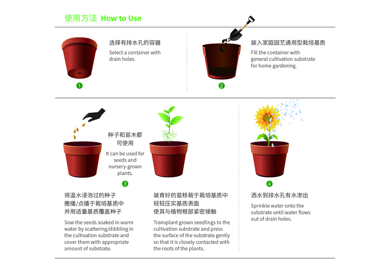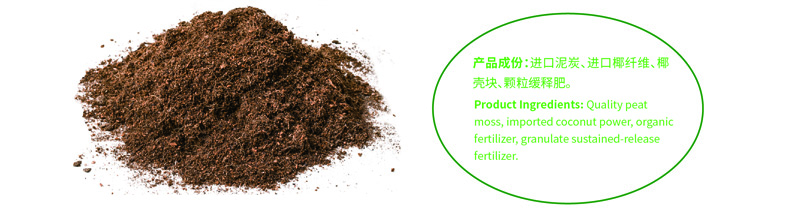 Imported peat, imported coconut fibres, perlite, vermiculite, granulate sustained-release fertilizer.